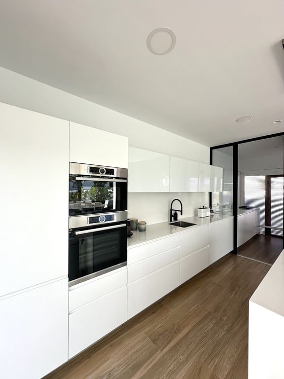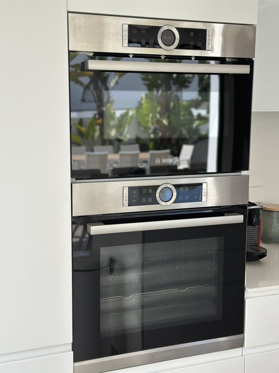 Een charmante binnenplaats, verscholen in het hart van het huis, voegt een vleugje rust toe, ideaal om te ontspannen na een dag van ontdekking. Vervul uw culinaire wensen in de luxe keuken, uitgerust met strakke Bosch-apparatuur, terwijl de aangrenzende bijkeuken op maat gemaakte kasten biedt voor een verborgen droger, wasmachine en gootsteen voor extra gemak.