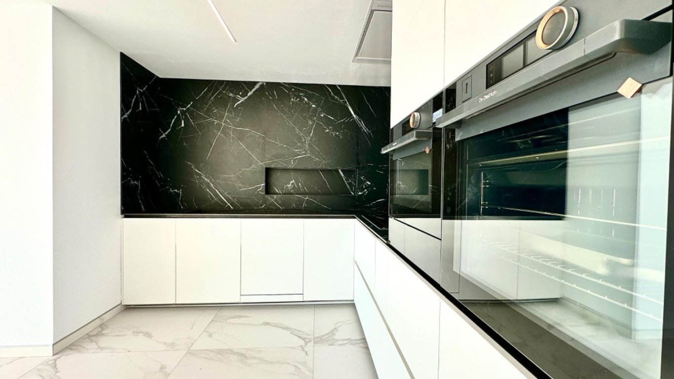 A modern, stylish and spacious new villa is located in an elite neighbourhood - Altea Hills. This house is thought out to the smallest detail - it is equipped with a "smart home" system, made of presets for solar panels, and its placement allows you to enjoy incredible views of the Mediterranean Sea from all bedrooms, from the sunny terraces of the Infinity pool and other corners of the house. The area of the plot is 817 square metres, the area of the villa is 350 square metres.The house has three levels, there is an elevator for the comfort of the owners. Large panoramic windows fill this beautiful house with light, and the location of the house guarantees you privacy and comfort. On the first level there is a spacious kitchen - living room, as well as one bedroom, on the lower floor there are four bedrooms with their own bathrooms with showers or baths.From the bedrooms, spacious terraces and from the area in front of the pool there are stunning views of Skyline Benidorm, the Altea coast, and the mountains.It is also possible to place another bedroom or office.