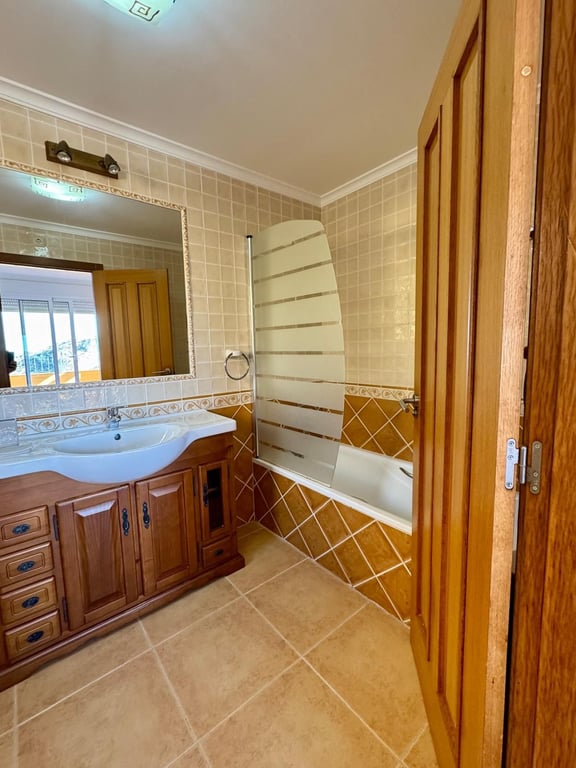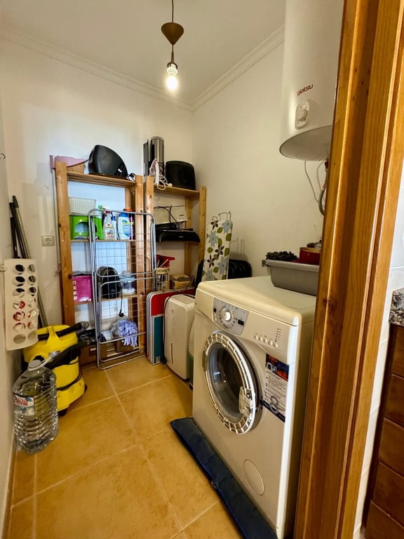 The property consists of three bedrooms, two full bathrooms, a spacious and cozy living room, and a separate, fully equipped kitchen. Next to the kitchen is a utility room with space for a washing machine and cleaning supplies – a very practical solution for everyday use.