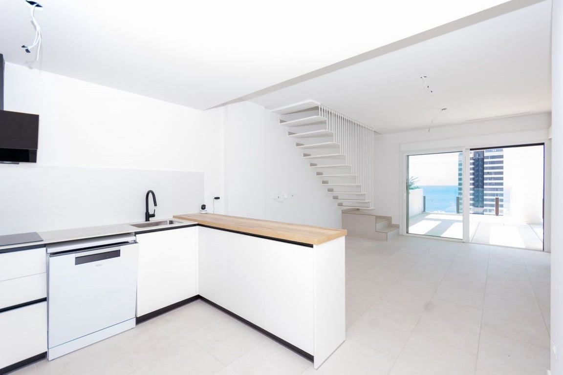 Spectacular, luxurious duplex penthouse with a private rooftop pool, located in the heart of Calpe – less than 200 meters from the beach! This unique apartment, located on the 15th floor of a prestigious south-facing building, offers some of the most impressive views on the Costa Blanca – the sea, the famous Peñón de Ifach, the city skyline, picturesque salt flats, and the Oltá mountain range. Built in 2024 and never inhabited, it impresses with its modern design, the highest quality finishes, and an atmosphere of luxury. The spacious living room with dining area flows seamlessly into the modern American-style kitchen, and large sliding windows open the space onto a sunny terrace. The apartment has three comfortable bedrooms – the master bedroom with a private bathroom and access to the main terrace, the second bedroom with its own intimate terrace, and the third bedroom – ideal for a guest room or study – complemented by an elegant family bathroom. The real gem of this property is the spectacular roof terrace with a private pool, where you can enjoy panoramic views, sunbathe in the sunshine, and spend unforgettable moments with your loved ones. The interior has been finished with the highest quality materials. The equipment includes: an efficient and energy-saving independent ducted air conditioning and heating system, high-class exterior woodwork, advanced acoustic and thermal insulation, large-format sliding windows in the living room and master bedroom, a complete kitchen with modern appliances, elegant bathrooms, built-in wardrobes, and fiber optic connection. An additional advantage is the possibility of personalizing the finish – from lamps and mirrors to the selection of furniture – which allows you to create a space fully tailored to the style of the future owner. The property has category A energy and emission certificates, which proves its high energy efficiency and care for the environment. The price includes a parking space in the garage and a large storage room. The estate features a large swimming pool and a carefully landscaped garden with relaxation areas. The excellent location means that everything is within easy reach – from golden beaches, marinas, and golf courses to exclusive boutiques, restaurants, bars, international schools, medical centers, and picturesque walking trails. This is not just a property – it is a lifestyle of the highest standard, ideal for those who appreciate modern luxury and a Mediterranean atmosphere. More details available on request.