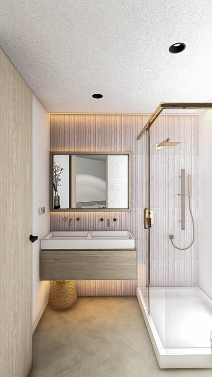 Boven zijn er twee ensuite slaapkamers, elk met een eigen terras, wat intieme ruimtes creëert met een eigen karakter. Alle kamers hebben een patio of privé tuin, wat het pand een unieke en intieme sfeer geeft.