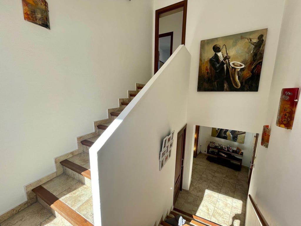 De bovenverdieping van de villa is bedoeld voor een luxe masterbedroom met eigen badkamer voorzien van ruime douchecabine. Hier kunt u ontspannen in de badkuip terwijl u door een speciaal ontworpen panoramisch raam het prachtige uitzicht bewondert. De hoofdslaapkamer is uitzonderlijk ruim en licht en heeft tevens toegang tot een groot dakterras waar u kunt genieten van werkelijk schitterende panoramische uitzichten.