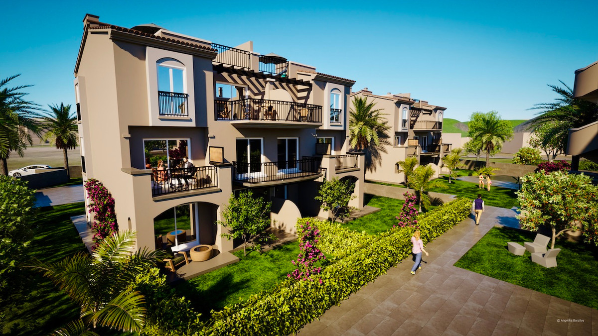 Dit appartement op de begane grond heeft een oppervlakte van 87,82 vierkante meter plus een tuin van 280 vierkante meter. Het bestaat uit twee slaapkamers, ingebouwde kasten in alle kamers, open keuken met alle apparatuur (koelkast, oven, inductiekookplaat, vaatwasser), 1 volledig afgewerkte badkamer (douche en glazen scherm), privé betegeld terras grenzend aan de woonkamer en slaapkamer. Hoofdslaapkamer met eigen solarium met zomerkeuken, terras en douche, uitzicht op de gemeenschappelijke ruimtes (tuin en zwembad), natuurpark Montgó, het kasteel van Denia en een parkeerplaats buiten. Ook is er een mooie gemeenschappelijke tuin met een zwembad. Prijzen tussen 381.150€ en 389.300€.