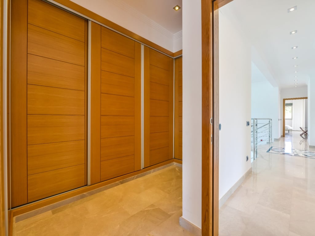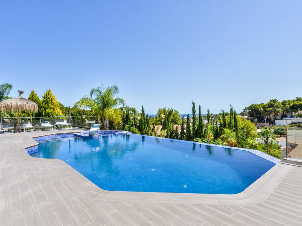 Grote luxe villa te koop in La Fustera, gelegen op een boogscheut van het prachtige strand, supermarkt, restaurants, tankstation..., dicht bij Moraira en Calpe. Deze prachtige moderne villa in mediterrane stijl geniet van een zeer mooi uitzicht op zee, veel zon (op het zuiden) en maximale privacy. Het is gelegen op een prachtig perceel van 1.840 m2 en heeft een bebouwde oppervlakte van 585 m2, verdeeld over twee verdiepingen + kelderverdieping als volgt: op de begane grond hebben we de entree veranda, een fantastische hal van 25 m2 met een mooie dubbele trap die toegang tot de bovenverdieping, een overdekte spa en ontspanningsruimte met een verwarmd zwembad van 6x3 meter + jacuzzi + waterval, sauna voor 6 personen, fitnessruimte van 25 m2 en 1 toilet, grote wasruimte van 15 m2, eetkeuken van 30 m2 met eiland, fantastische woon-eetkamer kamer van 75 m2 (met design open haard), en veranda van 50 m2 (perfect uitgerust met een zomerkeuken), die overgaat in het buitenterras van 100 m2 waar we een prachtig verwarmd zwembad van 70 m2 hebben. Geïntegreerd in de tuin, hebben we ook een barbecue die in verbinding staat met het buitenterras. Op de bovenverdieping hebben we 5 grote slaapkamers (25 m2 + 20 m2 + 18 m2 + 18 m2 + 12 m2), 4 badkamers en suite, een kleedkamer en 2 privéterrassen (80 m2 + 25 m2). In het souterrain hebben we een feestzaal (met bar) van 40 m2 (met daglicht via een Engelse patio), 1 gastentoilet, gastenappartement (ook met toegang van buitenaf), bestaande uit 1 badkamer, 1 slaapkamer van 12 m2 en open keuken woon-eetkamer van 25 m2. Daarnaast hebben we op deze verdieping een open ruimte van 110 m2 die voor deze woning een veelheid aan uitbreidingsmogelijkheden biedt. Deze indrukwekkende villa valt op door zijn prachtige design, door zijn exclusieve materialen en door zijn hoogwaardige afwerking. Het is uitgerust met vloerverwarming en airconditioning, hoogwaardig buitenschrijnwerk, design binnenschrijnwerk, design keuken volledig uitgerust met Smeg toestellen, design badkamers, alarm + camera's, LED-verlichting... Bovendien geniet het van grote buitenparkeerplaatsen voor meerdere voertuigen en een indrukwekkende pergola van 50 m2 (voor 3 voertuigen, die gemakkelijk kan worden omgebouwd tot garage), gelegen naast de hoofdingang van het pand. De tuin is spectaculair, met grote grasvelden, prachtige palmbomen en onderhoudsarm (met automatisch irrigatiesysteem).