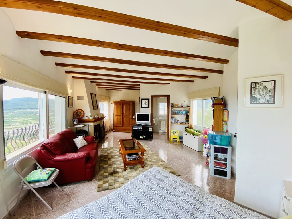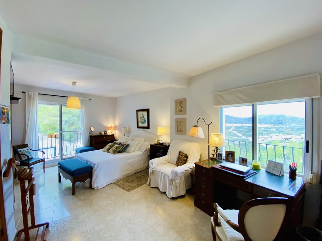 Deze ruime villa met apart appartement en B&B mogelijkheden is rustig gelegen en geniet van prachtige verzichten over de vallei en de zee. De automatische poort brengt u op de oprit met garage en grote berging. Op de benedenverdieping is er een apart toegankelijk gastenappartement met open leef- en slaapruimte, een keukenhoek en ingerichte badkamer (wordt momenteel verhuurd aan 80€ - 98€ per nacht). Via een buitentrap komt u bij de voordeur van de villa, met een gezellig terras langs de voorzijde en mooi zeezicht. De woonkamer is licht en ruim, heeft een open haard en een draaitrap naar de bovenverdieping en de (af te sluiten) benedenverdieping. De aparte keuken is volledig geïnstalleerd en heeft toegang tot het terras met zwembad en de tuin. Een nachthal brengt u naar de royale master bedroom met ensuite badkamer, een tweede zeer grote slaapkamer en een aparte badkamer. Boven is er een studio (leef- en slaapruimte) met open haard en ensuite badkamer, een overdekt terras dat toegang biedt tot de laatste slaapkamer met ensuite badkamer. Buiten is het heerlijk vertoeven in de tuin met romantisch prieeltje, het zwembad van 5 x 11 m (met winterzeil) en de aangelegde terrassen met buitenkeuken, pergola en diverse rustige hoekjes om te genieten van het prachtige zicht. De beneden- en bovenverdieping kunnne beiden afgesloten worden van de hoofdverdieping, zodat dit ook de ideale locatie wordt voor een bed and breakfast. De verhuur van de het gastenappartement beneden covert de vaste kosten van de villa.
