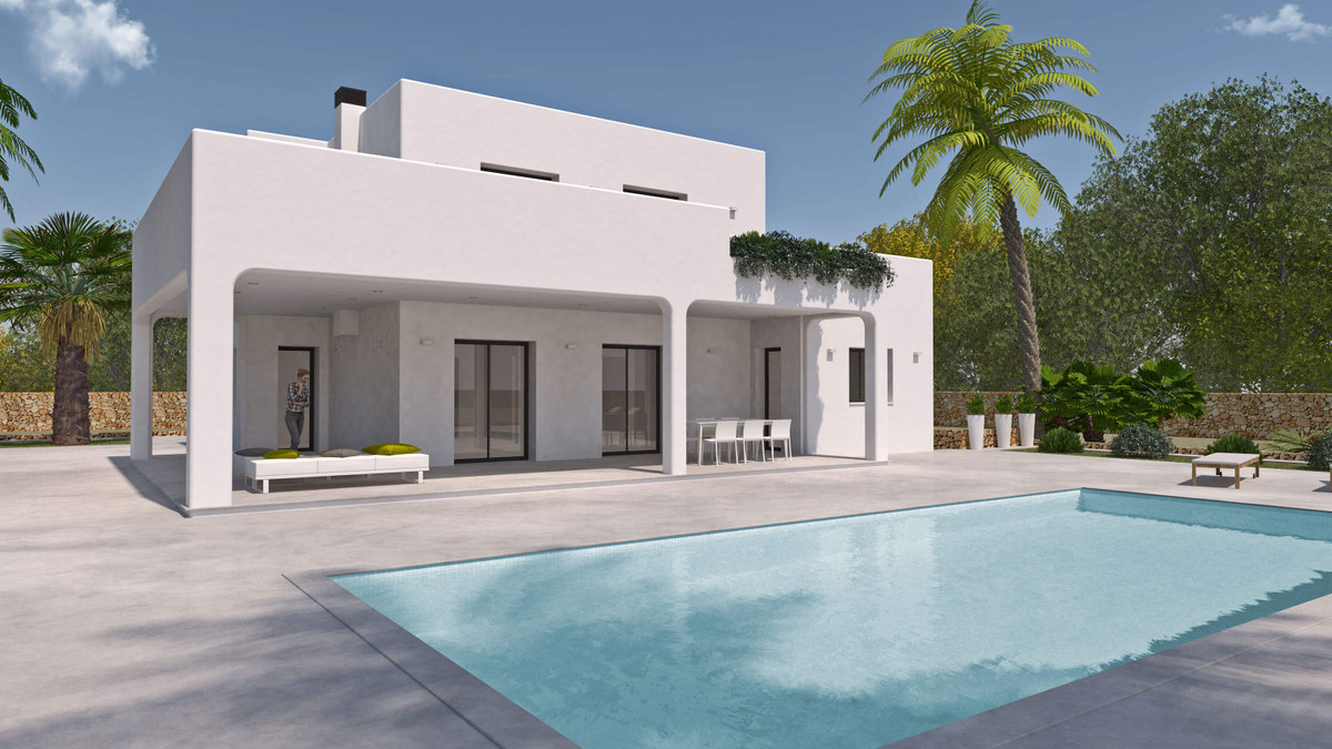 Deze uitzonderlijke, stijlvolle nieuwbouw villa in een natuurgebied, vlakbij Pedreguer, is ongeveer 300m² groot en is gebouwd op een domein van 10.000m². In deze nieuwe residentie vindt u een ruime woon- en eetkamer, met ingebouwde open haard, en een open keuken met bijkeuken. De woonkamer en keuken zijn voorzien van glazen schuifdeuren die toegang geven tot de overdekte terrassen. In de hoofdingang is er een apart toilet en toegang tot 2 ruime slaapkamers, elk met een eigen badkamer. Ook op de eerste etage zijn 2 ruime slaapkamers ontworpen, tevens elk met een eigen badkamer. De eerste verdieping biedt toegang tot een groot dakterras met uitzicht op de zee en het prachtige natuurgebied Montgo. Deze bijzondere woning heeft een zwembad, aangelegde tuin, oprit met toegangspoort en carport voor 2 auto's. Er zijn slechts 4 villa's van dit type beschikbaar. De ruwbouw van 2 villa's is al klaar. De andere 2 villa's zijn nog in aanbouw.