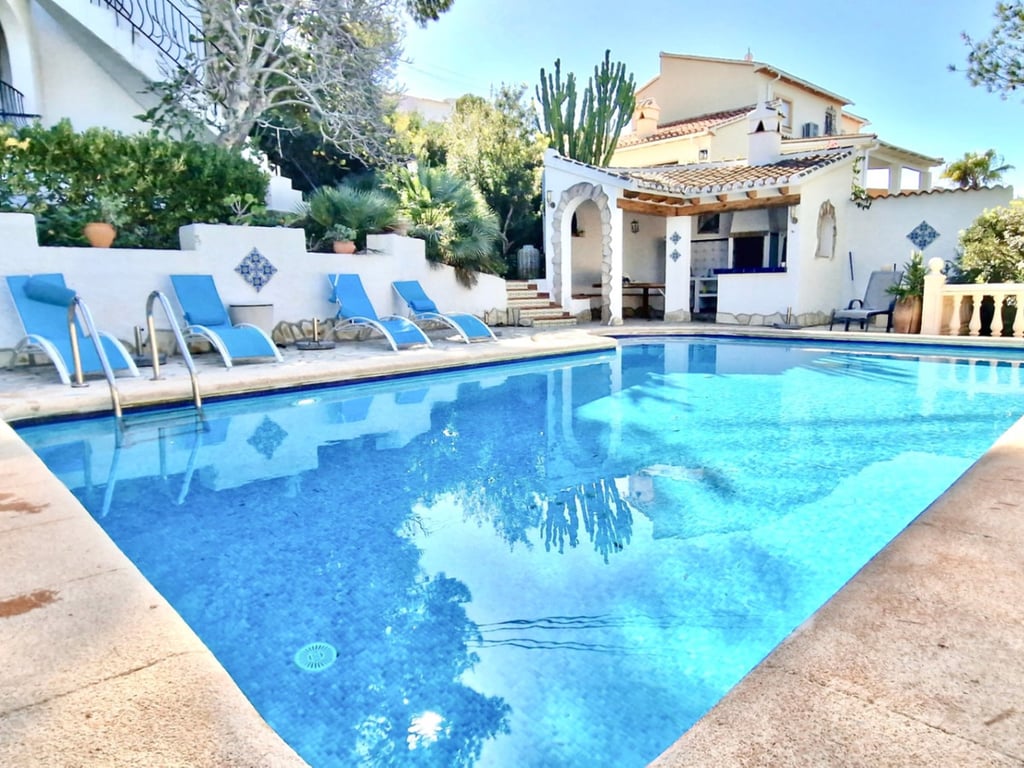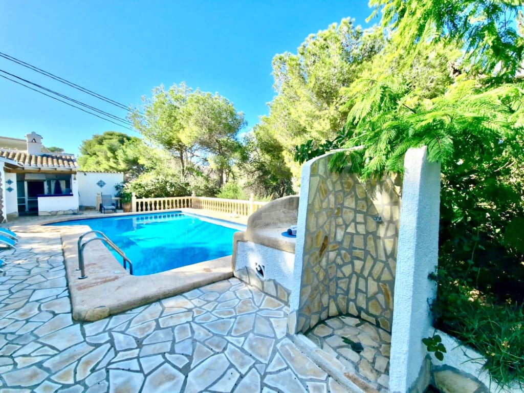 Chalet in the prestigious area of La Granadella (Jávea) with views of the natural park. This charming Mediterranean-style villa stands on a generous plot, just a few minutes from La Granadella beach and nestled in a privileged natural environment. It combines the tranquility of the surroundings with the convenience of living close to the sea and local amenities. Space DistributionWith a constructed area of 164 m2, it features a total of 3 cozy double bedrooms and 2 bathrooms. This chalet offers enough space for a family or for those who enjoy hosting guests. On the main floor, there are two double bedrooms, a bathroom, the living-dining room, the open-plan kitchen, and a beautiful terrace with panoramic views of the natural park. Below, there is a guest apartment with a large room that has direct access to its spacious terrace and an en-suite bathroom. The chalet is situated on a generous plot of 814 m², providing you with a large garden and the opportunity to enjoy the outdoors. The large private pool and summer kitchen is the perfect place to relax and enjoy the warm summer days. Make the most of its two spacious covered terraces and beautiful views that allow you to fully enjoy the Mediterranean climate, whether it's having coffee in the morning or enjoying dinner at sunset. The house also includes a laundry room. Summary Bullets2-bedroom villa + 1 guest room next to La Granadella natural park, JáveaSouth-facing plot of 814 m²Mediterranean style, panoramic views of the park, and quiet location near La Granadella beach.Living room with fireplace.Large private pool and spacious terraces with views for year-round enjoymentOutdoor summer kitchen, outdoor shower, and low-maintenance garden.Strategic location: nearby beach, natural and tranquil environment, promoting a relaxed lifestyle, yet just minutes from local amenities and the vibrant social life of Jávea.Key ConclusionsThis property combines a privileged location, functional design, and outdoor spaces ready for enjoyment — a key combination to attract both buyers searching for a primary residence and investors.The generous plot (814 m²) and private pool add significant value compared to many standard properties in the area, enhancing the perception of exclusivity.The demand for quality homes on the Costa Blanca remains strong: therefore, presenting this data clearly helps reinforce the message of "opportunity" and accelerates conversion. In summary, this property is a perfect blend of comfort, style, and location. If you are looking for a home on the coast with all the amenities you need, this chalet in Jávea is waiting for you. Please do not hesitate to call us to schedule an appointment.