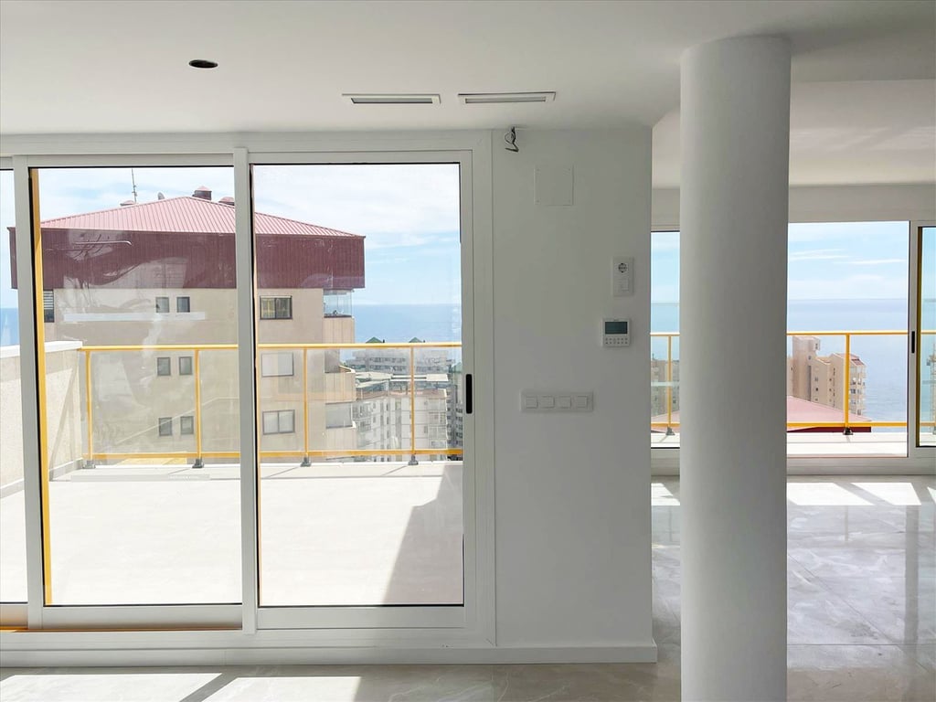 Renovated 21st-floor duplex penthouse for sale in Calpe, Costa Blanca, with spectacular sea views, a communal pool, and a garage, just 150 meters from the beach.