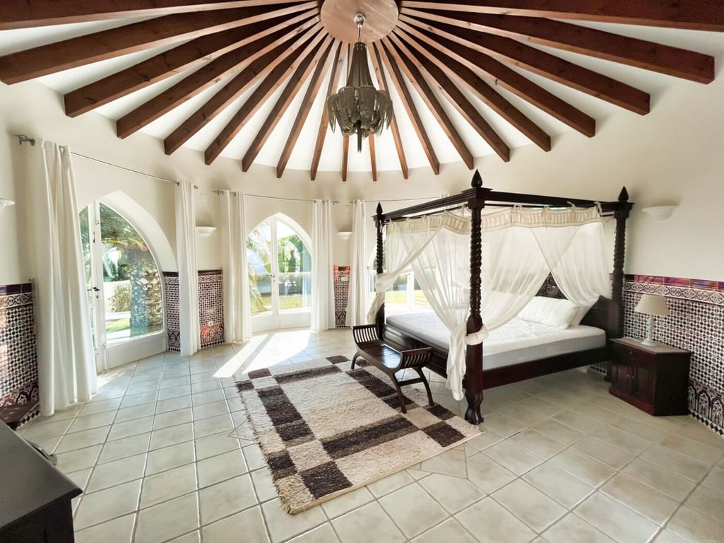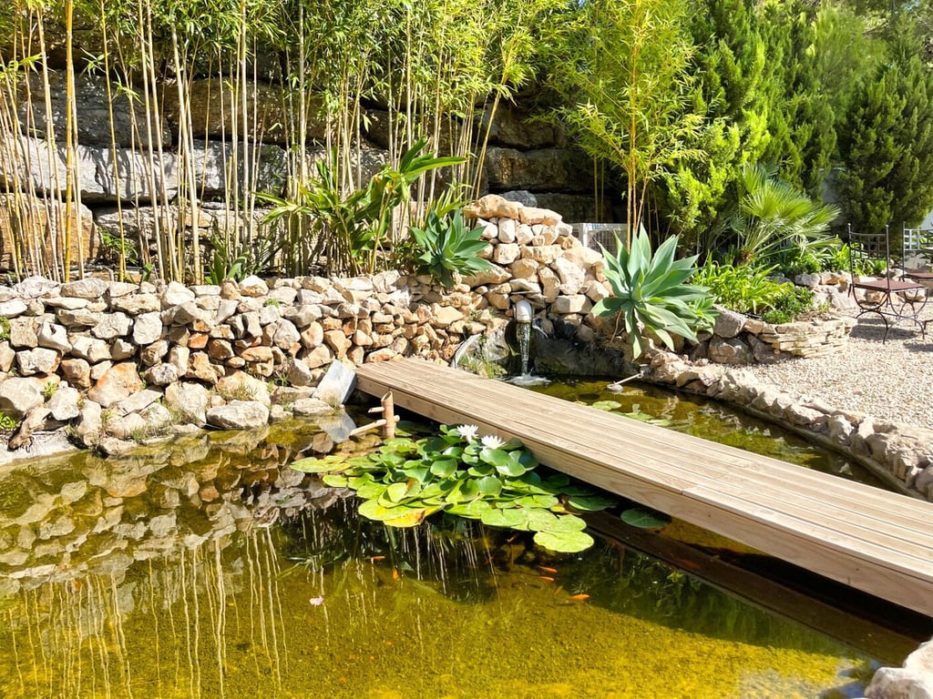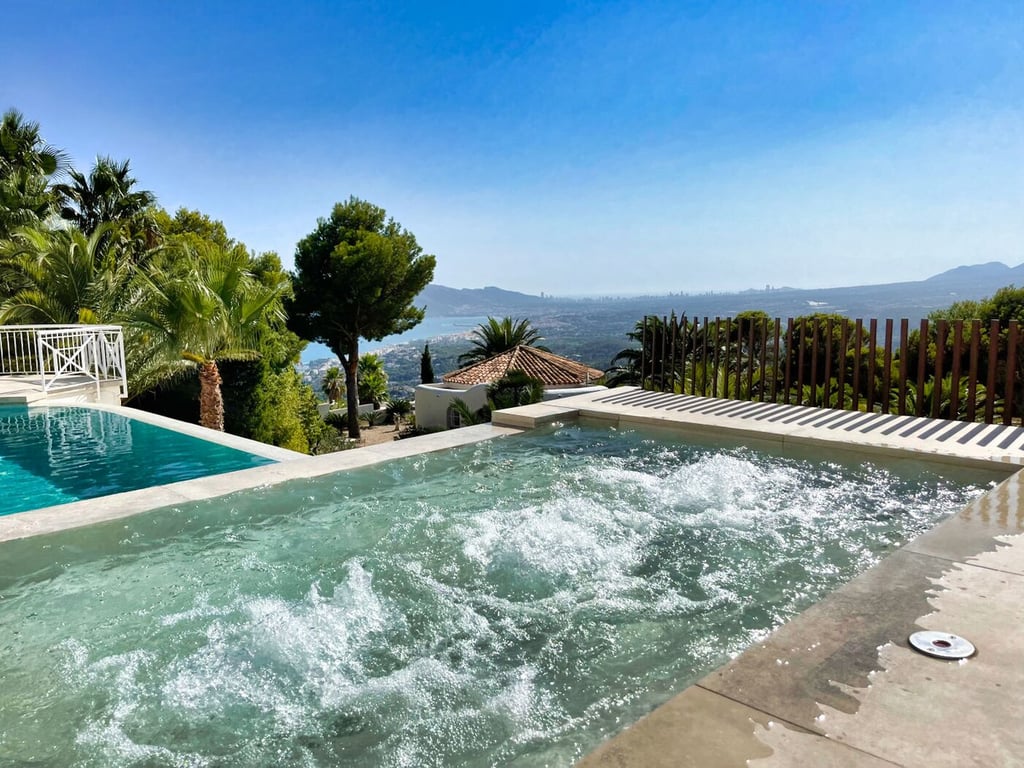 Luxe villa gelegen in de Sierra de Altea, met zeven slaapkamers, een gastenverblijf, panoramisch uitzicht op zee en de bergen, rust en privacy. Ideaal gelegen dicht bij het centrum van Altea en op 6 minuten van de stranden en de golfbaan, biedt deze woning in mediterrane stijl met een eigentijds ontwerp ongeveer 920 m2 woonruimte. Het is gerenoveerd in 2017 met gebruik van hoogwaardige materialen en met een elegante stijl en een moderne buitenkant verdeeld over drie niveaus.  De luxe villa is omgeven door een perceel van 2440 m2, aangelegd, omheind en perfect gemanicuurd, met een verscheidenheid aan bloemen, volwassen planten en een spectaculair uitzicht. Een prachtige entreehal met een aantrekkelijke houten deur verwelkomt je in dit uitzonderlijke pand en leidt je naar een grote open ruimte waar je een woonkamer met open haard, eetkamer en volledig uitgeruste designkeuken met eiland vindt, ideaal voor entertainment in gezelschap. Op dezelfde verdieping is er een elegante ouderslaapkamer met ook panoramisch uitzicht op zee, inbouwkasten en een en-suite badkamer met douche, bad en dubbele wastafel.  Dankzij de grote ramen zul je versteld staan van het uitzonderlijke zeezicht op de baai van Altea en de Sierra Helada. Er zijn ook twee en-suite slaapkamers, elk met een eigen badkamer. Op de onderste verdieping, die toegankelijk is via een sierlijke binnentrap, vind je nog een lichte en ruime open ruimte met een tv-kamer, een eetkamer en een aantrekkelijke open keuken.  Voor extra gemak bevinden zich op dit niveau zowel de wasruimte als de berging. Op de begane grond van deze luxe villa is er een fitnessruimte, een bijkeuken, extra opslagruimte en een afgesloten garage voor drie voertuigen.  Dankzij de geoptimaliseerde indeling is deze woning ideaal voor het ontvangen van een groot aantal gasten en geschikt voor grote gezinnen, waar iedereen zijn privacy kan behouden en kan genieten van de vele ontspannen binnen- en buitenhoeken.  Als je door de tuin wandelt en recht tegenover een vijver met exotische vissen staat, zie je het onafhankelijke gastenverblijf met Marokkaans design en een prachtig uitzicht op de zee en de privétuin.  Dit huis is voorzien van alle mogelijke gemakken en airconditioning. Daarnaast is er een aangesloten veiligheidsalarm, kabeltelevisie en glasvezelinternet. Je zult ook de hoge balkenplafonds opmerken en de harmonie van edele en natuurlijke materialen in de hele villa.