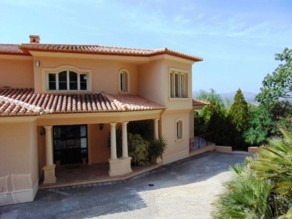 Impressive designed property on the upper slopes of the Montgo with fantastic South facing views.Located 15 minutes from the Old Town of Javea, 10 minutes from La Sella Golf and 15 minutes from the town of Denia.Automatic gates down a gently sloping driveway with plenty of parking, double garage and space for boats or caravans.Porch leading through to an impressive hallway with fabulous wrought iron staircase, leading to upper bedrooms.On the main level at the entrance is a large office/Study/Library, Guest WC, 42m2 Lounge with Feature fireplace and doors leading out onto a wide Naya area overlooking the Swimming Pool, ideal for watching the sunsets.Adjacent is a second lounge ideal TV room or games room. Large Dining room suitable for seating 12 people again with doors leading out onto the terrace.Stylish Kitchen with dining area, featuring central reservation with halogen hob, double oven and Microwave, and separate utility with drying area.Spacious guest bedroom with dressing area and en-suite bathroom with double vanity units.On the upper level are three equally spacious bedrooms all with en-suite bathrooms and with access to a large terrace to enjoy the morning sunrise. The main bedroom has air conditioning and a jacuzzi bath.The 12x6 freeform pool with jacuzzi, pretty terraces and established trees the area and below is a tennis court.On the lower level of the villa accessed internally is a variety of rooms ideal as a gymnasium, apartment, kitchen with plumbing ready. All prepared and ready to go.
