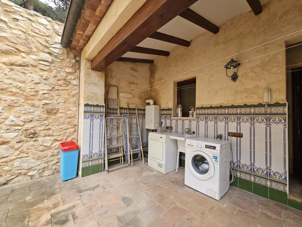 Welkom in dit charmante huis van natuursteen, gebouwd in 1800 en gerenoveerd in 2002 met hoogwaardige materialen! Gelegen op een perceel van 3.900 m² in Calpe, biedt dit landgoed een unieke en karaktervolle omgeving, op slechts 1 km van het Arenal-strand, ongeveer 20 minuten lopen en 400 meter van de Tennisclub. De zuidoriëntatie zorgt voor licht en zon de hele dag door, wat een warme en uitnodigende ruimte creëert. Bij aankomst heb je gemakkelijk toegang via de elektrische schuifdeur of de voetgangersdeur. Je vindt een overdekte garage met capaciteit voor twee auto's, plus extra parkeerruimte buiten. Rechts bevindt zich een oude natuurlijke waterput met zijn klassieke wasbak, ideaal voor wie de traditionele charme waardeert; het is momenteel niet aangesloten, maar er is de mogelijkheid om het met een pomp aan te sluiten, en het is gesloten en omheind voor extra beveiliging, gescheiden van de woning. Het zwembad, met een voorbereid systeem voor verwarming, nodigt uit om het het hele jaar door te genieten. Het heeft ook een buitendouche, WC in een apart schuurtje waar de zwembadpomp zich bevindt, en een berging. Het huis heeft 4 slaapkamers, allemaal met airconditioning voor kou/warmte. Op de begane grond is er één slaapkamer, en op de bovenverdieping bevinden zich nog drie, waarvan er twee met elkaar zijn verbonden door een deur die leidt naar een gedeelde kamer met tweepersoonsbedden en een ruime berging. De 3 badkamers omvatten er één met bad en de andere twee met douche. De centrale verwarming in het hele huis, samen met een kluissysteem in een van de kamers, zorgt voor comfort en veiligheid. Het is ook opmerkelijk dat er inbouwkasten zijn met veel opbergruimte, plafondventilatoren, rolluiken en horren voor alle ramen, en een Mobila-houten afwerking met mooi uitzicht. De zelfstandige keuken is volledig uitgerust en heeft een aparte voorraadkamer. De woonkamer met een gesloten open haard creëert een warme en gezellige sfeer. Buiten kun je genieten van een binnenplaats met wasserij, perfect om op winderige dagen met een koffie te ontspannen. Het buitengebied omvat ook een barbecue, een vogelhuisje voor vogelliefhebbers, een omheining met een hondenhuisje en een overdekt gedeelte dat kan worden verglast, ideaal om van het landschap en het klimaat te genieten. Bovendien is er een originele houtoven die een rustiek en authentiek tintje toevoegt. Vanuit het pand heb je een prachtig uitzicht op Calpe en de Peñón de Ifach, wat dit huis echt speciaal maakt. Zonder twijfel is het een huis dat geschiedenis, comfort en natuurlijke schoonheid combineert, perfect voor een comfortabel en charmant leven. Aarzel niet om contact met ons op te nemen om het te bezoeken!