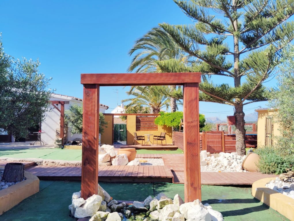 Het hoofdgebouw, van 132 m², valt op door zijn gezellige en functionele stijl, met drie slaapkamers, waarvan er twee zeer ruim zijn en de derde iets kleiner, twee complete badkamers, waarvan een en-suite. Woon- en eetkamer die open is naar een ruime en lichte keuken. Buiten geniet je van een prachtig zwembad, een ruime barbecuezone, zomkeuken met traditionele oven, beschutte pergola's en perfecte hoekjes om te ontspannen of onvergetelijke momenten te delen met familie en vrienden.