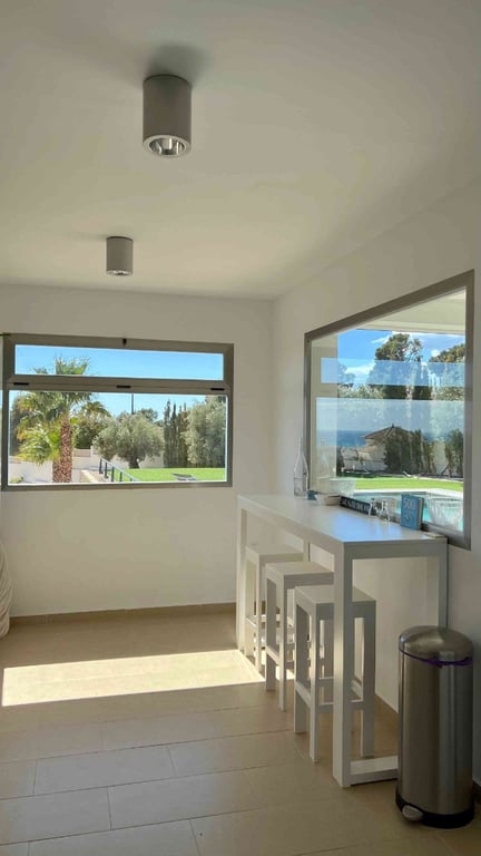 Ruime villa van 330 m2 op een perceel van 2000 m2 in de exclusieve wijk Monterico, Altea la Vella. Het pand is verdeeld over twee verdiepingen, volledig omheind en met twee automatische ingangen voor gemakkelijke toegang tot de garages of de hoofdingang van het huis. De hoofdtoegang tot de villa is op de eerste verdieping.  De eerste verdieping bestaat uit een ruime woon/eetkamer met een houtgestookte open haard en met ramen van vloer tot plafond die toegang geven tot het overdekte terras en het zwembad. Op dezelfde verdieping zijn er 3 slaapkamers met inbouwkasten, en-suite badkamers en terras. Er is ook een gastentoilet in de gang. De keuken is onafhankelijk met toegang tot het terras met zwembad. De onderste verdieping bestaat uit een lounge / speelkamer, met uitgang naar een groot overdekt terras en de tuinen, 2 slaapkamers met inbouwkasten en een eigen badkamer.  Ook op deze verdieping vindt u de aparte wasruimte en berging.   Er is een extra 50m2 ruimte beschikbaar voor uitbreiding, die vele mogelijkheden biedt zoals een berging, hobbyruimte, wijnkelder, home cinema etc. Het zoutwater overloopzwembad meet 12 x 4m en is uitgerust met een zelfreinigend systeem, tegenstroomzwempomp, warmtepomp en LED-verlichting. Het water wordt schoon en warm gehouden met een volledig geautomatiseerde geïsoleerde lamellenafdekking.   De oriëntatie van het huis is op het zuiden. Het heeft topklasse Panasonic airconditioning/verwarming en beveiligingssysteem.  en beveiligingssysteem.  Er is een ruime garage van bijna 50m2 met voldoende parkeergelegenheid buiten.  Het huis heeft een prachtig uitzicht op de zee, de bergen en het zwembad, onderhoudsvriendelijke tuinen met automatisch bewateringssysteem geïnstalleerd,  Airconditioning warm en koud en dubbele beglazing. Altea la Vella is gelegen op 5 min. rijden, 7 km van Altea, 5 km van het Olla strand.