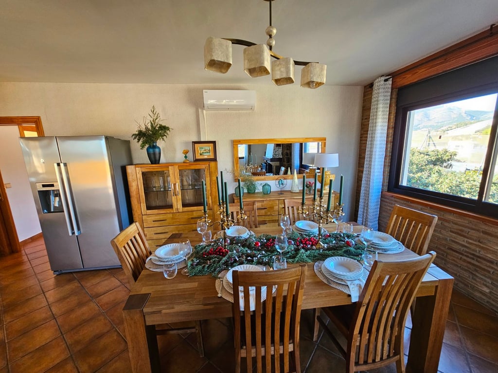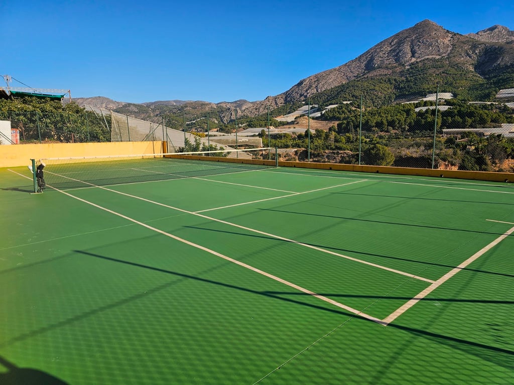 Op een uitgestrekt perceel van 16.000 m², omringd door sinaasappel-, olijf- en nispero-plantages, ligt deze schitterende villa van 380 m² op slechts 1 km van Callosa d'en Sarrià. De ligging biedt volledige rust, privacy en panoramisch uitzicht op de bergen. Indeling villa: Op de tweede verdieping bevindt zich een open keuken met een ruime woon- en eetkamer die direct toegang biedt tot het terras met prachtig uitzicht. Hier zijn ook drie slaapkamers, waaronder een master bedroom met en-suite badkamer voorzien van douche en bubbelbad, plus een extra badkamer met ligbad. De eerste verdieping telt nog drie slaapkamers en twee badkamers. Deze verdieping biedt veelzijdige mogelijkheden, zoals het creëren van een aparte woonruimte of het installeren van een extra keuken.  Buiten vindt u het zwembad, een barbecueplaats, houtoven en een ruime garage. Extra voorzieningen: Privétennisbaan Heliport Gastenverblijf van 90 m² met 4 slaapkamers en 3 garages van elk 65 m² (waarvan één kan worden omgebouwd tot appartement) Omheind perceel van ca. 2.000 m² rondom de bebouwing Gelegen op ca. 12 km van de kust bij Altea en op 75 km van de luchthaven, is dit een uitzonderlijk object voor liefhebbers van ruimte, natuur en comfort. Een unieke kans voor wie droomt van het landelijke leven met luxe en vrijheid!