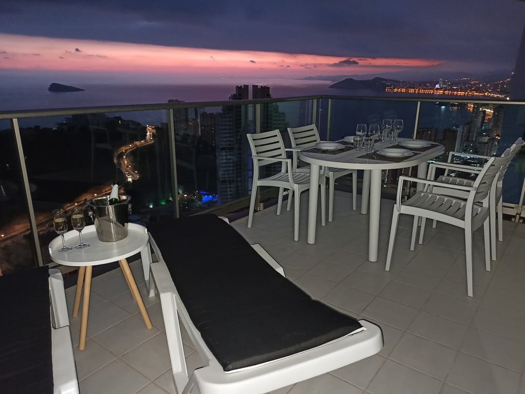 Op de 29e verdieping van Torre Lugano bevindt zich dit appartement, met indrukwekkend panoramisch uitzicht over de zee en de stad Benidorm. Het appartement heeft een oppervlakte van 89m² met 2 slaapkamers, 2 badkamers, een woonkamer en een groot terras, waar men van de zon en het uitzicht kan genieten. Er zijn ook 2 privé-parkeerplaatsen en 1 opslagruimte in het gebouw. Het appartement is op het volle zuiden gericht. Het is zeer goed onderhouden en heeft een nieuwe Daikin airconditioning met geïntegreerde WIFI uit 2024. Het gebouw Torre Lugano is het 2e hoogste gebouw van Benidorm met in totaal 42 verdiepingen en een hoogte van 158m.