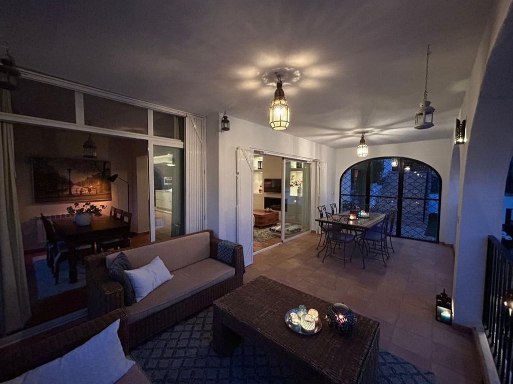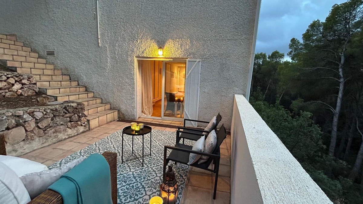 Verscholen aan het einde van een rustige doodlopende straat in een van de meest serene woonwijken van Altea la Vella, biedt deze elegante mediterrane villa de perfecte balans tussen privacy, natuurlijke omgeving en modern comfort. Met een panoramisch uitzicht op de bergen en het bos vanaf meerdere terrassen, straalt de omgeving rust uit, terwijl het toch op slechts 15 minuten van het strand en de pittoreske oude binnenstad van Altea ligt. De hoofdwoning is smaakvol gerenoveerd en beschikt over een ruime open woon- en eetkamer met een gezellige open haard. Grote ramen en een naadloze verbinding met een stijlvol halfbeglaasd terras maken het een uitnodigende plek om het hele jaar door van te genieten. De volledig uitgeruste open keuken, voorzien van hoogwaardige apparatuur, combineert functionaliteit met een moderne stijl. Op deze verdieping vindt u drie lichte slaapkamers en twee badkamers, waaronder een comfortabele master suite met een eigen badkamer. Op de benedenverdieping, met een eigen ingang, biedt een compleet gastenappartement met twee slaapkamers uitstekende verhuurmogelijkheden of een ideale indeling voor bewoning door meerdere generaties. Het beschikt over een open keuken, een comfortabele woon- en eetkamer, een complete badkamer en twee privéterrassen, waarvan één in de schaduw van volgroeide bomen voor momenten van rust. Vanaf hier leidt directe toegang tot het privézwembad, ontworpen voor volledige privacy en ontspanning. De woning beschikt ook over een dakterras van meer dan 20 m² met een adembenemend panoramisch uitzicht - een perfecte plek om te ontspannen of gasten te ontvangen. Moderne gemakken omvatten airconditioning op de bovenverdieping, elektrische radiatoren in het hele huis en voldoende parkeergelegenheid op eigen terrein voor meerdere voertuigen. Of u nu op zoek bent naar een veelzijdige gezinswoning met ruimte om te groeien of een slimme investering met direct inkomstenpotentieel, deze villa biedt beide. De instapklare staat, hoogwaardige afwerking en rustige maar toegankelijke locatie maken het een zeldzame vondst in een van de meest gewilde wijken van Altea la Vella.