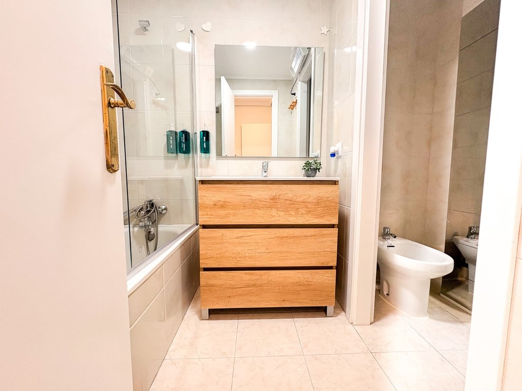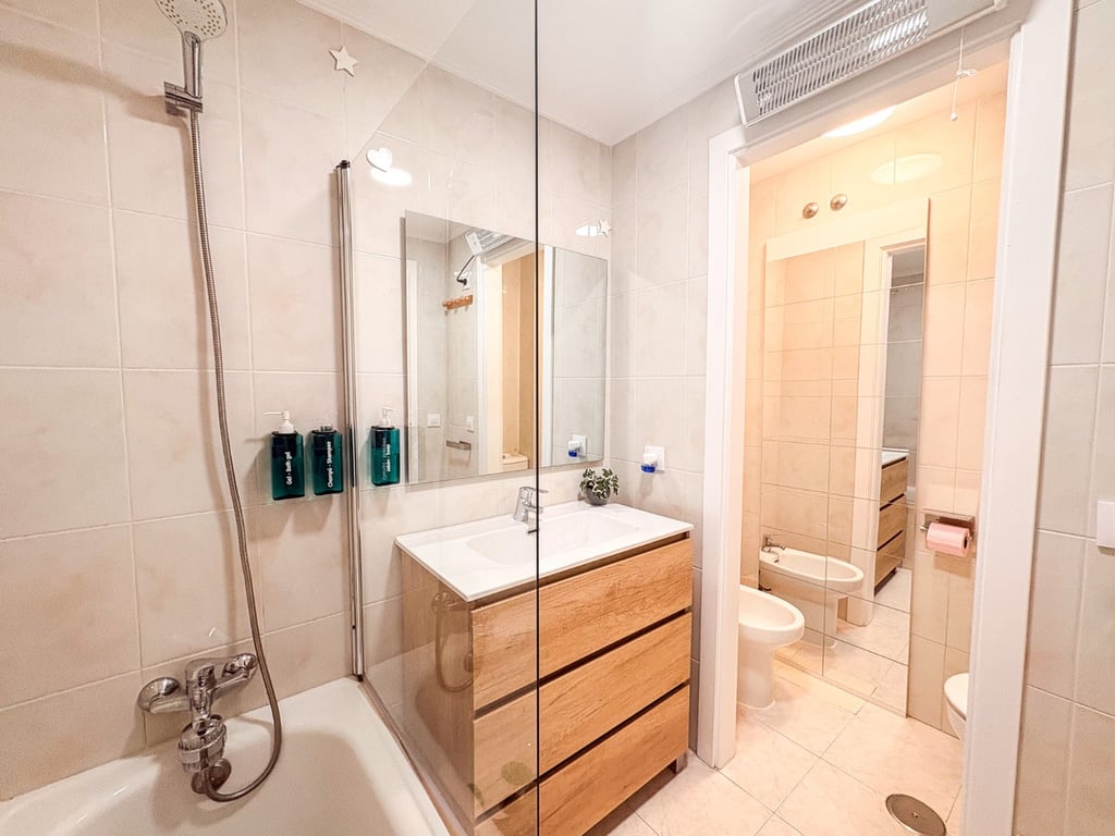 In de kelder bevindt zich een ruime kamer met aangrenzende badkamer , airconditioning, een inbouwkast en een raam met uitzicht naar buiten. Ideaal als hoofdslaapkamer, logeerkamer of aparte kamer.