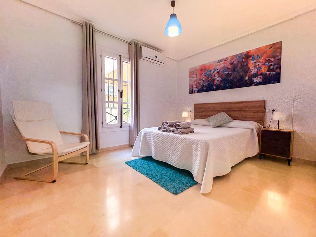 Deze volledig gemeubileerde en instapklare woning is gelegen in een beveiligd wooncomplex met een gemeenschappelijk zwembad , ruime groene zones , tuinen en een rustige sfeer. Een privéparkeerplaats is ook inbegrepen – een waardevolle bonus in deze gewilde woonwijk.