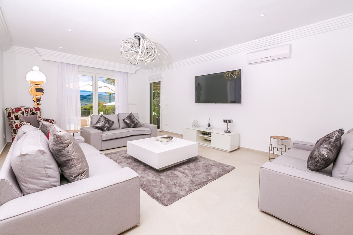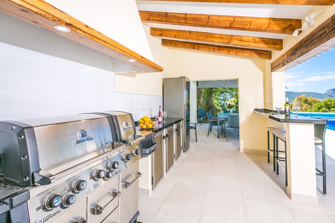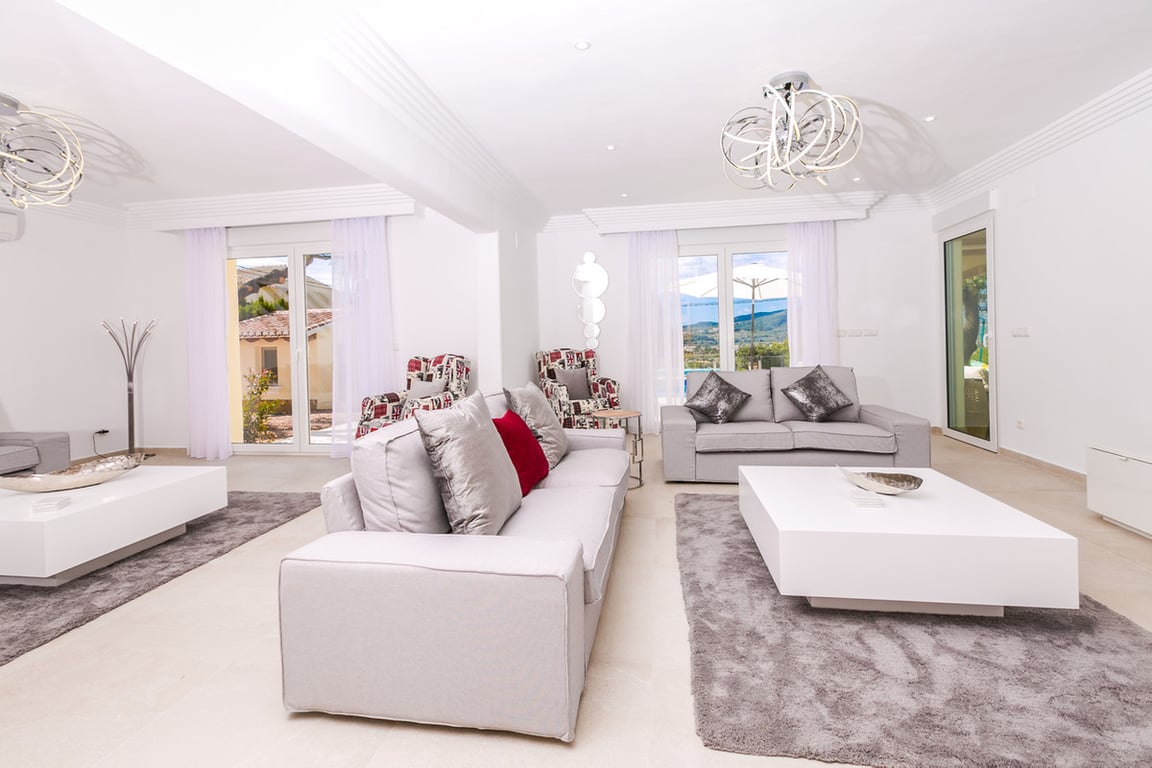 We are happy to exclusively offer you Casa Juana which is a modern, luxury 6 bedroom villa, totally refurbished to an extremely high standard in summer 2019 and constantly improved since. This superb south facing villa is located on the famous Montgo mountain, with spectacular views and only a short distance from Javea's old town, port and Arenal beach. Situated in extensive landscaped gardens, a child friendly grassed area, on a completely flat plot with good wheelchair access. The villa benefits from a 12m x 6m heated swimming pool with easy access Roman steps. The villa has outdoor entertainment with a summer kitchen and dining area adjacent to the pool which is equipped to an incredibly high standard with fridge freezer, giant "Broil King" gas BBQ and hobs. There is a smaller breakfast bar and dining for 12 by the poolside. You can also take advantage of the covered naya (terrace) with a large dining table and lounge seating which overlooks the pool. You also have uninterrupted views to the garden. Entering the house, you will find a superb open plan fully fitted modern kitchen with the latest hi tech appliances, 2 fridge freezers, breakfast bar and island, laundry room and pantry. Adjacent to the kitchen is the grand dining area with patio doors leading out onto the covered naya and then to the gardens and pool. A Large lounge area with extensive seating has patio doors again leading to the outside terraces and pool. Also on this level there are four spacious bright double bedrooms, three with en-suite bathrooms, one family bathroom and a further guest toilet. Three of the bedrooms benefit from patio doors leading directly to the garden and terraces. The master bedroom is luxurious, modern and extremely large and also benefits from a large walk in dressing area, double sized en-suite bathroom, complete with large bath and a separate walk in shower. On the first floor there are two double en-suite bedrooms, both with patio doors opening on to the south facing balcony overlooking the pool and gardens. The first floor master bedroom benefits from a private balcony and views towards the Montgo mountain.The lower ground floor has a cinema room with comfortable lounge seats and a drinks fridge. Also on this level is the games room with a full size pool table and dart board. In addition, there is a garage with space for several cars in addition to the large driveway with parking for more vehicles including under a covered carport.The property has extremely high environmental standards and comes with solar panels with battery back up, a large state of the art air source heat pump,that powers the underfloor heating and hot water. The solar array powers the heated pool, hot/cold air conditioning and the rest of the electrical requirements of the property; there is also a 14kw external power supply to back up the solar system in the winter. The current owners have maintained and updated the property to the highest standards and the property is a credit to them.This fantastic villa would be ideal for a family to live in luxury, or would be ideal for someone looking for a turnkey rental business. The property continues to register substantial rental income, with returns available for potential buyers to view, the villa can be sold fully furnished for the new owner to continue the business.